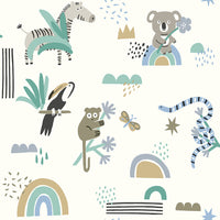 Add a playful touch to any space with Abstract Animals Multi. This lively design features colourful, stylised jungle animals, along with rainbows, spots, and stripes, creating a fun and whimsical atmosphere perfect for kids’ rooms or creative spaces.