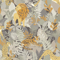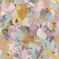 Animal Kingdom is a vibrant design featuring tigers, leopards, and lions nestled among lush tropical leaves. With its rich blue tones and playful yet sophisticated style, it’s perfect for adding a touch of adventure and character to a child’s bedroom. A standout wallpaper from Holden Décor.