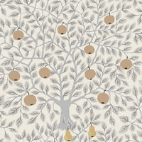 Add a touch of timeless elegance to your home with the Apelviken Apples and Pears Wallpaper from Galerie. Inspired by the classic artistry of William Morris, this vintage design features golden fruits intertwined with soft grey foliage on a crisp white background. Perfect for creating a serene yet sophisticated atmosphere, it can be used throughout a room or as a charming feature wall. Its delicate balance of colour and pattern brings warmth, refinement, and classic beauty to both traditional and modern interiors.