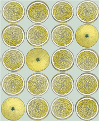 A recurring motif in the Fornasetti archive, the bold repeat of Mediterranean citrus in Arance first appeared on the 1950s tray Fette d’arancia, later reimagined by Barnaba Fornasetti in the 1990s as a striking fabric print. This lively, organic study bursts with true-to-life shades of Blood Orange, Orange, and Lemon, set against contrasting grounds of chalky Seafoam, soft Stone, and sumptuous Ink. The result is a design that feels both timeless and refreshingly contemporary.