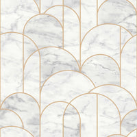 Elevate your interiors with Arch, featuring a sophisticated marble effect enhanced by shimmering gold accents. In elegant shades of grey and white, this wallpaper adds a touch of luxury and refinement, making it a striking backdrop for living rooms, lounges, or any space in need of a decadent statement.