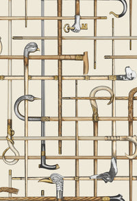 Originating as a silk scarf print in the 1940s, the canes of Bastoni capture the eclectic spirit of the House of Fornasetti, inspired by umbrella and hat stands overflowing with antique walking sticks. Its graphic, checkerboard-style repeat echoes many of Fornasetti’s iconic designs, creating a bold and striking motif.