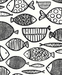 The Cadence wallpaper by Seabrook Designs, from the Piano collection, features a playful fish motif with each fish uniquely patterned, arranged in a half-drop design. Printed on high-quality, unpasted nonwoven paper that’s washable and strippable, is easy to install and maintain. Available in colourways like Volcanic Black, Lily, and Contrasto, it adds a vibrant or subtle touch to any space, making it ideal for accent walls or full-room applications.