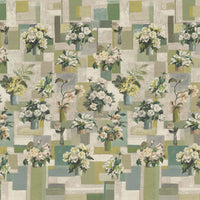 This exquisite floral grasscloth wallpaper panel celebrates artistry and romance with a contemporary edge. Painterly vases filled with garden blooms are set against a graphic backdrop of hand-painted tiles, creating a captivating fusion of pattern and texture. Digitally printed onto luxurious natural grasscloth with a non-woven backing, this scenic design evokes the depth and nuance of a hand-painted mural.