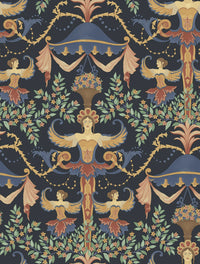 Inspired by the carousel-style ceiling of the Presence Chamber in Kensington Palace’s King’s State Apartments, Chamber Angels reflects the grandeur and celebratory spirit of this historic space. Originally designed by William Kent, one of the most influential figures in early 18th-century design, the pattern combines dancing figures with delicate foliage and ripened fruits—once found in the palace orangery—creating a richly decorative and evocatively decadent motif.