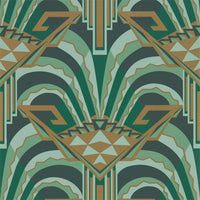 The epitome of Art Deco design, this striking rotary-printed geometric wide-width wallpaper is a faithful interpretation of a 1930s archive document. The interplay of matte and metallic inks evokes the decadence of the era. Named after Gordon Conway, a fashion artist and Vanity Fair illustrator, the design captures the spirit and glamour of the Jazz Age.