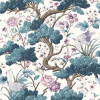 Inspired by the refined artistry of traditional Japanese design, the Crane Bird Japanese Blue Wallpaper brings a serene elegance to any interior. Graceful cranes – long celebrated as symbols of longevity and peace – perch among bonsai-like branches, cascading wisteria, and delicate blossoms. A sophisticated palette of teal foliage, sea-green leaves, and soft lavender blooms contrasts beautifully against a warm cream backdrop. Each hand-painted detail adds texture, depth, and movement, evoking timeless tranquillity with a contemporary edge.