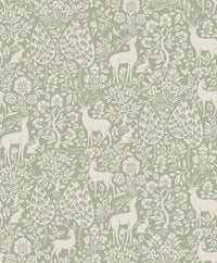 Deer Woods captures a tranquil woodland scene where deer and rabbits wander through a softly illustrated landscape. A gentle linen-textured effect adds warmth and depth, unifying the wildlife and scenery into a calming, storybook design. Perfect for creating a peaceful, nature-inspired atmosphere in any room.
