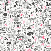 Doodle is a fun, contemporary design featuring playful, hand-drawn illustrations scattered across the wall, accented with vibrant neon elements. Perfect for kids and teens rooms, this lively wallpaper adds energy and creativity to any space.