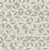 The Einstein Geometric Wallpaper by Seabrook Designs, from the Avant Garde collection, features a bold, dimensional design of interlocking triangles forming star-like patterns. Made from heavyweight, unpasted acrylic-coated paper, it is washable and wet-removable for easy maintenance. Available in metallic colorways such as Gold & Black, Silver & Black, Gold & Off-White, and Gold & Silver, it’s perfect for creating a striking statement wall in contemporary living rooms, dining areas, or entryways.