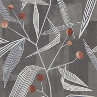 Entity is a striking wallpaper showcasing an angular geo-floral design. Stylised leaves and bud motifs create a three-dimensional effect, enhanced with gloss, metallic accents, and textured grit for added depth and visual interest.