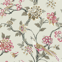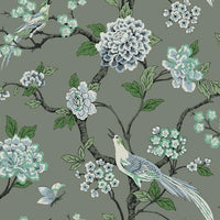 Bring a touch of modern elegance to your walls with Fanciful Wallpaper by York Wallcoverings. Featuring a delicate trail of birds and blossoms highlighted with metallic accents, this design offers a contemporary update on classic style.