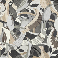 Make a bold artistic statement with Fauvist Flock Wallpaper by York Wallcoverings. This impressionistic interpretation of birds transforms familiar motifs into abstract art, featuring expressive shapes in blue, green, brown, coral, light pink, and terracotta for a striking modern aesthetic.