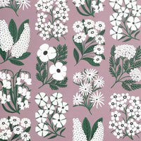 Celebrate British blooms with Freida by Abigail Borg. Stylised Ragged Robin, Campion, Tansy, and Buddleia drift across a softly muted sky-ground, creating a refined botanical rhythm. Available in Sky, Mauve, and Rose colourways for effortless pairing with classic or contemporary schemes.
