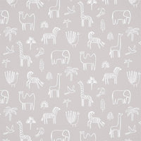 Simply illustrated and full of character, this well-spaced scene of hand-painted African animals is a versatile design. Perfect for playrooms and nurseries, it pairs beautifully with Carnival Stripe or Helter Skelter Stripe for a coordinated look.