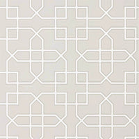 Hampton Trellis coordinates magnificently with all designs in The Glasshouse collection. Named after the wonderful maze at Hampton Court, this smart structural geometric pattern has been rotary printed to provide a chalky opaque ground against the metallic and gritter detailing of the trellis design.