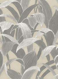 The Imperial Tropical Wallpaper by Seabrook Designs, from the Koi collection, features large-scale tropical foliage and stylized botanical motifs with metallic accents, creating a luxurious, nature-inspired look. It's perfect for adding a dramatic, elegant focal point to living rooms, dining areas, or bedrooms.