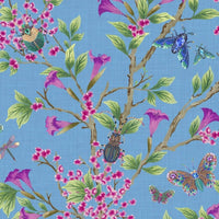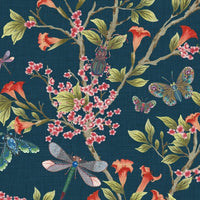 Jewel A Flutter is a captivating and intricate design that features brilliantly coloured insects and bugs living among climbing stems, lush leaves, and blossoming flowers. The design is meticulously detailed with illustrations of sequinned and beaded butterflies, dragonflies, and beetles, creating a vision of tranquility that is both relaxing and visually stimulating. Part of the Heart Deco collection, this wide-width wallpaper is designed to transport the interior into an enchanting, "jewel-toned" world far removed from everyday life.