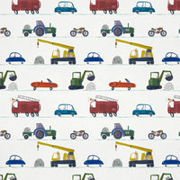 Discover your favourite vehicles within this colourful, playful Harlequin design. From seaside road trips to farm visits or heroic rescue missions, this motor-inspired wallpaper invites little imaginations to race off on endless adventures.
