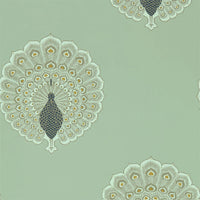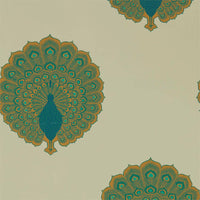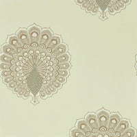 A symbol of royalty and fidelity, Kalapi features majestic peacocks with shimmering metallic tailfeathers set against a striking backdrop. Inspired by a fragment of 19th-century Indian chintz from the Sanderson archive, this wallpaper exudes character, elegance, and timeless beauty.