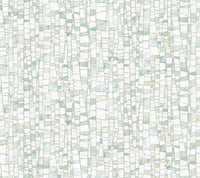 Bring depth and artistry to your walls with Kaleidoscopic Wallpaper by York Wallcoverings. Featuring a mosaic-like tiling of rustic and refined textures, this design blends spring greens, creamy whites, and soft greys accented with metallic silver highlights for a sophisticated organic look.