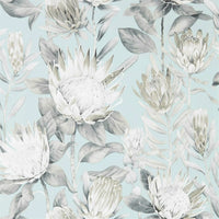 King Protea Wallpaper by Sanderson Inspired by an original Sanderson archive document, the majestic flowerheads of the King Protea plant are beautifully reinterpreted and recoloured to create a striking statement wallpaper. The sophisticated Linen colourway introduces a subtle touch of glamour against its soft matt detailing, while both it and the Aqua option are enhanced with delicate mica highlights for a gentle, light-catching finish. Features: Composition: Non WovenRoll Width: 69cmRoll Length: 10.05mVertical Pattern Repeat: Half Drop 69cmApplication: Paste the Wall Lead Time 3-4 weeks
