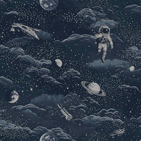 Lost In Space is an out-of-this-world wallpaper that takes young explorers on a cosmic adventure. Featuring astronauts drifting among swirling planets and stars, it transforms any room into a magical galaxy. Metallic silver detailing adds a shimmering effect, making the stars twinkle and bringing the celestial scene to life.