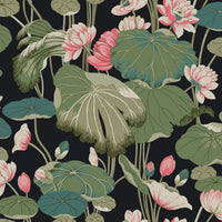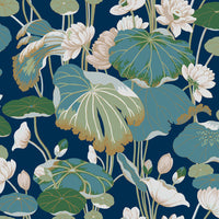 Inspired by the tranquil beauty of Asian art, Lotus Pond Wallpaper by York Wallcoverings evokes a floating world of lily pads, lotus flowers, and still waters. The graceful design brings a sense of serenity and timeless sophistication to any interior.