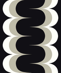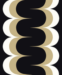 The Mandolin Wallpaper by Seabrook Designs, from the Piano collection, showcases a bold, large-scale geometric stripe with flowing curves, inspired by mid-century modern and Art Deco styles. Printed on high-quality, unpasted nonwoven paper, it is washable and strippable for easy maintenance. Available in striking colorways such as Black with Metallic Golden Straw, Onyx with Metallic Stone, Paper with Fog, and Golden Straw, making it perfect for creating a dramatic statement wall in living rooms, dining areas, or entryways while complementing a variety of contemporary interiors.