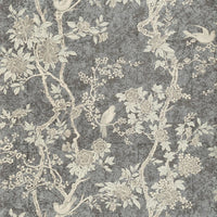 Inspired by an antique folding screen, this statement wallpaper layers two print techniques to echo the original’s nuanced textures. Dramatic black grounds are lifted by contrasting metallic highlights and rich jewel tones, creating depth, sheen, and a quietly opulent finish.