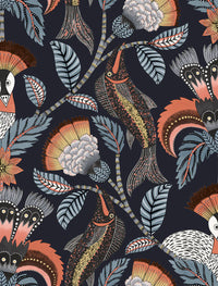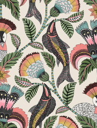 Exuberant and surreal, Nene pays tribute to a beloved Ardmore artist whose hand-painted works helped shape the studio’s early aesthetic. Inspired by an iconic vase, the design conjures a fantastical world where billed fish swim alongside the majestic Crowned Crane, its mask-like facial markings adding a dramatic focal point. Intricate patterns adorn leaves, feathers, and fins, while bold foliage and flowers create a lively display.
