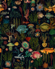 OCEANIA is a dramatic and vibrant design that celebrates the mystery and biodiversity of the deep sea. The artwork features a stunning array of marine life, including green-spotted puffer fish, jellyfish, sepias, turtles, and starfish, interwoven with exotic algae and coral. Set against a deep black background, the vivid colors create a high-contrast, luminous effect that transforms a room into a submarine sanctuary. Like other MINDTHEGAP premium wallpapers, it is printed in Transylvania on a high-quality non-woven substrate with a matte textured finish using eco-friendly, odorless inks.