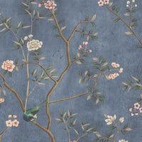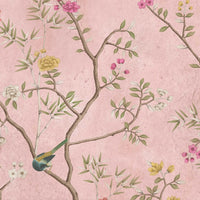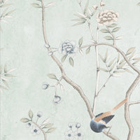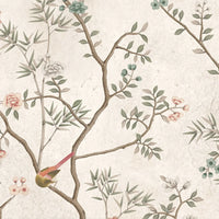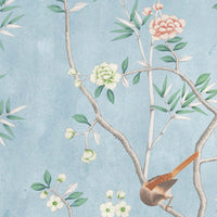 A dreamy fusion of Chinoiserie elegance and serene escapism, Onism Sky Blue Wallpaper transports interiors to an imagined paradise. Delicate branches unfurl with coral-hued blossoms, while a solitary bird perches in quiet contemplation against a soft powder-blue backdrop. Hand-drawn details capture the artistry of traditional Oriental design, as gentle foliage sways and butterflies drift through the air, imbuing the space with movement, tranquility, and effortless sophistication.