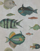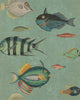 Green (WP20181): A lush and aquatic palette featuring fish in blue and red tones set against a pale green background.