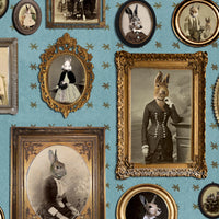 Rabbit, Rabbit, Rabbit, you can never have enough rabbits. A clever and intricate wallpaper design featuring the Wimbledon rabbit playing tennis and the Empress Josephine rabbit decked in her finest jewels. The perfect conversational wallpaper.