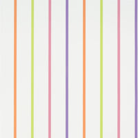 A versatile, brightly coloured fine stripe wallpaper that brings a cheerful, contemporary touch to any room. This Designers Guild rainbow stripe design features bold, vibrant hues in a refined linear pattern, creating a playful yet sophisticated effect.