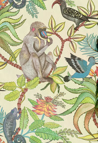 Savuti, one of Africa’s most cherished national parks, comes alive in this beautifully illustrated wallpaper. Hoopoes and hornbills call and sing, while baboons and chameleons bask in the flowering Coral Trees. This enchanting African garden is available in seven distinctive colourways, each offering a unique character: a bright orange and charcoal with a striking engraved effect, a duck egg and old stone palette with soft, antique tones, and three playful, vividly coloured options on cream, dark petrol, and khaki backgrounds.