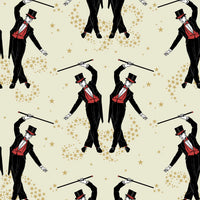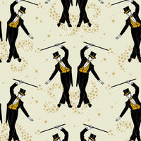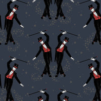 Showboys Wallpaper by Graduate Collection Step into whimsical elegance with Showboys by Sophie Tomes. A troupe of dapper performers pirouettes across a star-studded midnight ground, infusing your space with theatrical charm. Inspired by vintage cabaret and old-world showmanship, this captivating print brings a touch of magic and allure to your walls. Features: Composition: Non WovenRoll Width: 52cmRoll Length: 10.05mVertical Pattern Repeat: Straight match 60cmApplication: Paste the Wall Lead Time 3-4 weeks