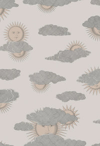 Inspired by Piero Fornasetti’s iconic 1950s design Sole di Capri, Soli e Nuvole brings a whimsical twist to interiors. Long before visiting the legendary island, Fornasetti imagined personified suns paired with stylized architecture—a motif first explored in a headscarf sketch from 1950. Now reinterpreted as an all-over print, suns and clouds float playfully across the wall, adding the designer’s signature quirk and charm to any space.