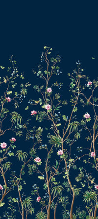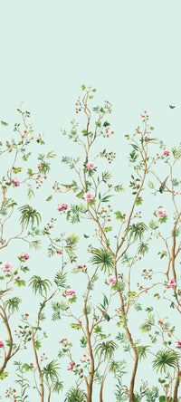 Stone House Court is a luxurious mural that captures the essence of a serene garden. The design features intricate detailing of foliage, birds, and flowers, creating a tranquil botanical atmosphere. It is printed on a high-quality non-woven substrate and is designed to be repeatable horizontally.