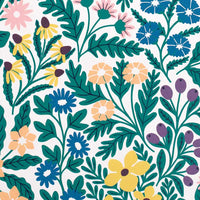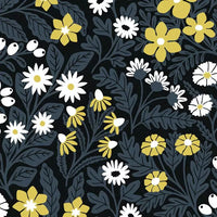 Strala by Abigail Borg—an elegant, contemporary take on meadow blooms. Abstract blossoms and trailing foliage drift across the design in a dark, muted palette, channelling the quiet mood of English wildflower fields with modern, understated sophistication.
