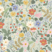 Strawberry Fields Wallpaper by Rifle Paper Co. bursts with bright blooms, trailing leaves, and sweet strawberries, creating a cheerful and inviting pattern for any room. Delicate butterflies flutter throughout the design, adding a whimsical touch that brings charm and playfulness to walls, perfect for kitchens, bedrooms, or feature spaces.