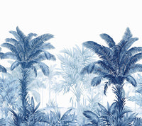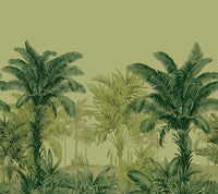 Sun Court is a striking exotic jungle scene mural that features towering palm trees and lush tropical foliage. The design captures a sense of grand botanical elegance, making it a perfect statement piece for contemporary or tropical-inspired interiors. The mural is endlessly repeatable horizontally.