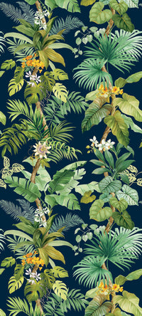 Swedeland is a striking botanical mural that showcases a lush vertical arrangement of tropical plants, including orchids and passion flowers. Designed to create a vibrant focal point, the mural is endlessly repeatable horizontally to accommodate wider walls.