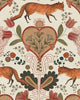 THE VIXEN is a bold and charming design that pays homage to Carpathian wildlife and ancestral hunting traditions. The artwork features a red fox standing prominently amidst a soothing, symmetrical floral decor. This eclectic design combines the impact of a mural with a traditional mirrored pattern, creating a sophisticated yet whimsical focal point. Manufactured in Transylvania, it is printed on a new generation non-woven substrate using eco-friendly inks to ensure a high-quality, matte textured finish.