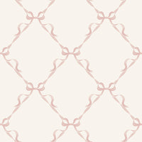 Add a delightful, charming touch to any room with Tied With a Bow. This elegant wallpaper features a sweet trellis of flowing ribbons delicately tied with bows, creating a soft and graceful pattern that feels like the room itself is beautifully wrapped.