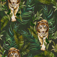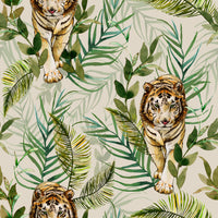 Invite a touch of jungle luxe with Tiger Tiger by Laura Hyden. A poised, serene tiger moves through delicate watercolour foliage, catching the eye as if emerging from the wall.