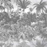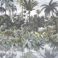 Tropical Reflections offers a captivating view of a scenic island mirrored within the surrounding sea, capturing the unique beauty and atmosphere of a faraway paradise. This large-scale, mural-style design is intricately hand-drawn; upon closer inspection, you can observe the charming day-to-day activities of the island's inhabitants.