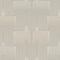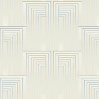 Layers of rectangles fade and re-emerge in a luminous Art Deco illusion across the surface of the geometric Vanishing design. Various colourways features a soft neutral base, with architectural rectangles delicately defined by metallic silver and gold lines, adding subtle shimmer and depth.
