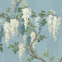 A vision of cascading tranquillity, the Wisteria in Cornflower Blue Wallpaper captures the delicate beauty of this timeless flowering vine. Inspired by the graceful sweep of wisteria blossoms, soft lavender and ivory petals intertwine with lush trailing foliage, bringing effortless romance to your space. Set against a muted cream backdrop, the intricate botanical detailing exudes serene elegance, making it the perfect centrepiece for a refined Chinoiserie or oriental-inspired interior.